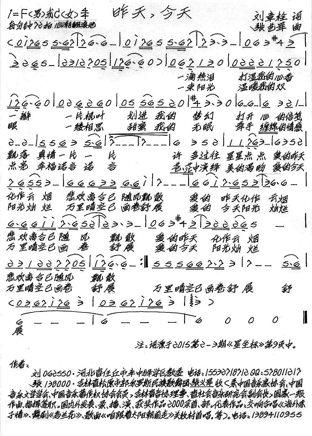 - [歌谱] 昨天今天