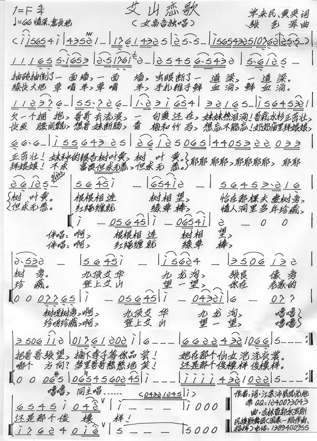 - [歌谱] 羌山恋歌