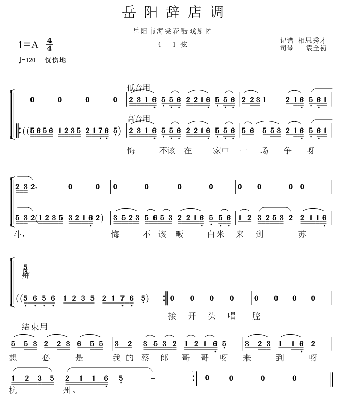 [笛子谱,歌谱,花鼓戏谱]