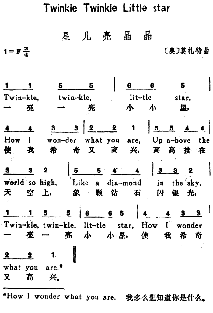 > 奥 星儿亮晶晶 TwinkleTwinkle Little Star 汉英文对照