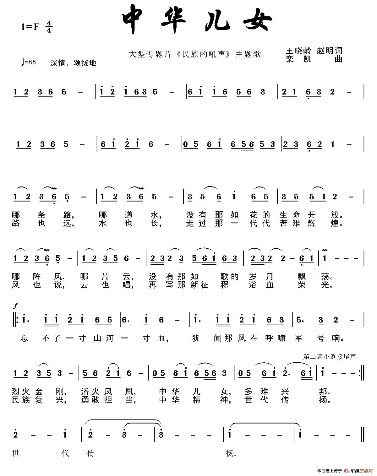 > 中华儿女 央视大型专题片 民族的吼声 主题歌