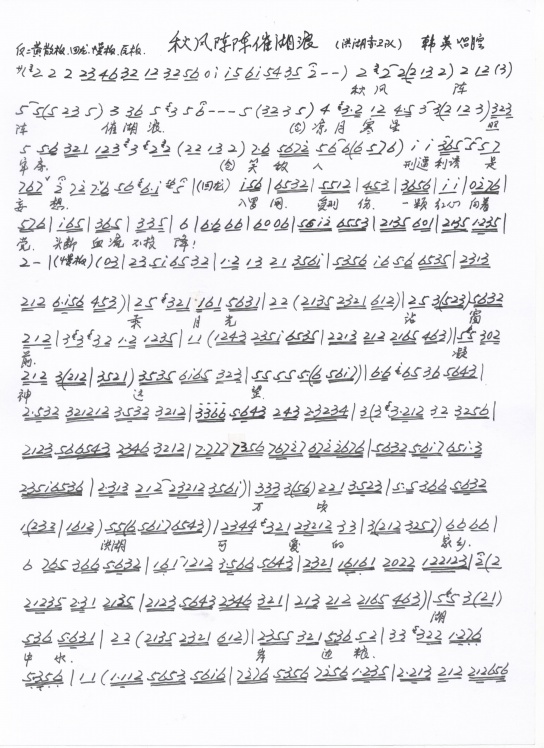 洪湖赤卫队 秋风阵阵催湖浪 手抄本