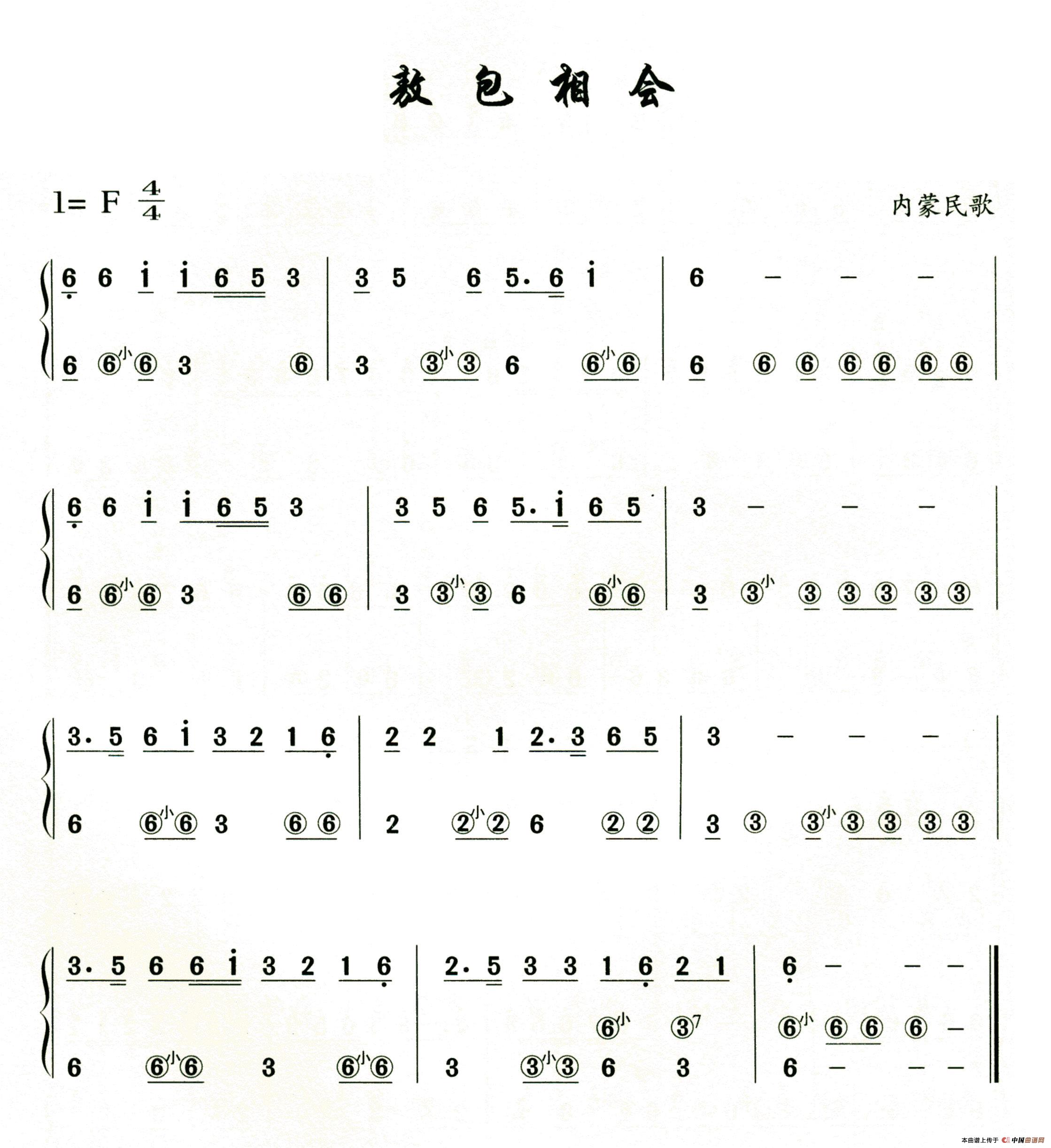 - [单簧管谱,手风琴谱] 敖包相会 内蒙民歌 手风琴