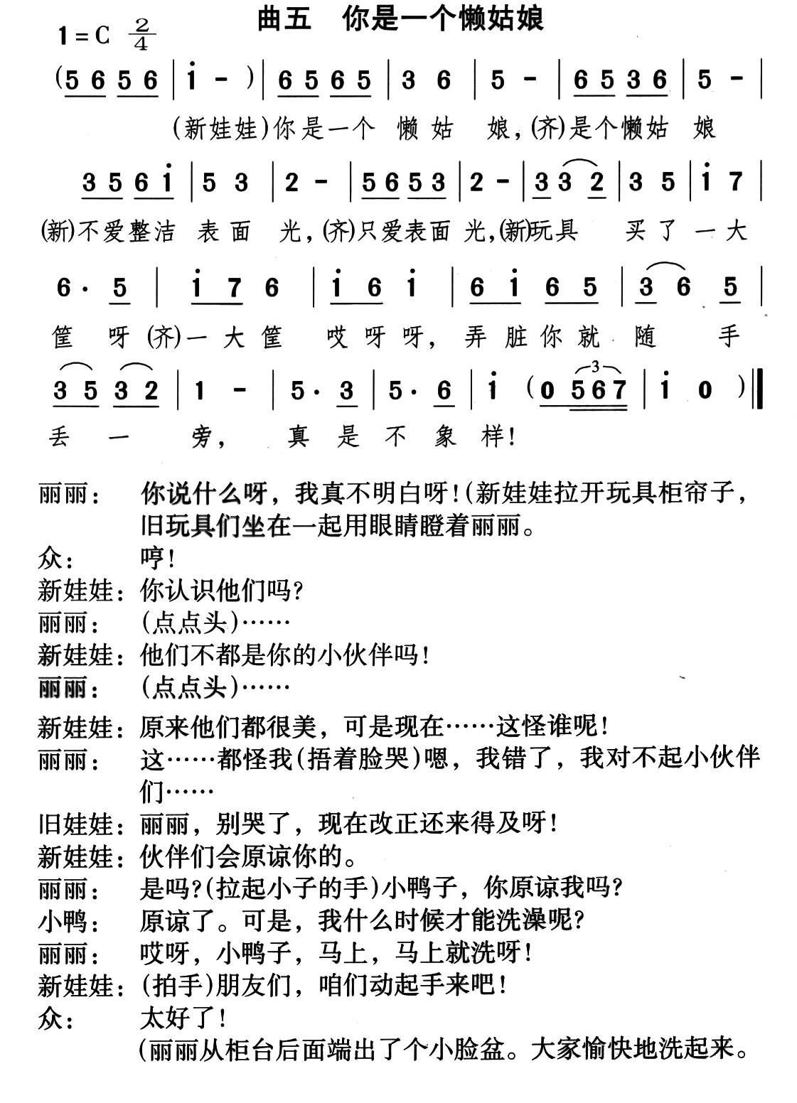 > 你是一个懒姑娘 童话歌舞剧 丽丽和布娃娃 曲五