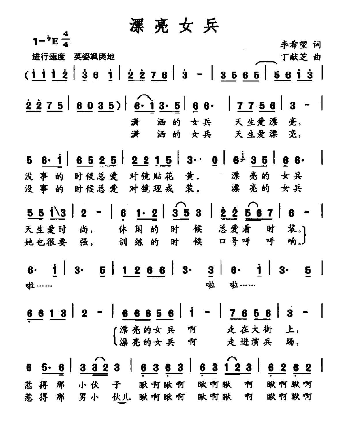 - [歌谱] 漂亮女兵