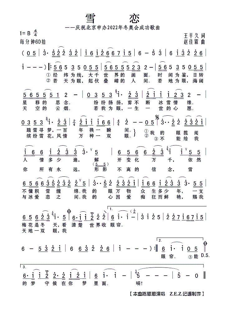 > 雪恋 庆祝北京申办2022年冬奥会成功歌曲