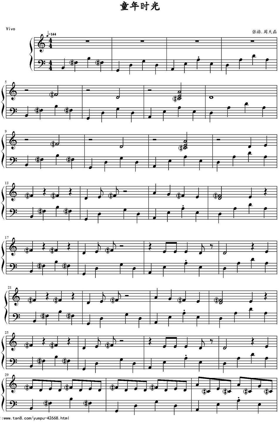 - [歌谱] 童年的时光