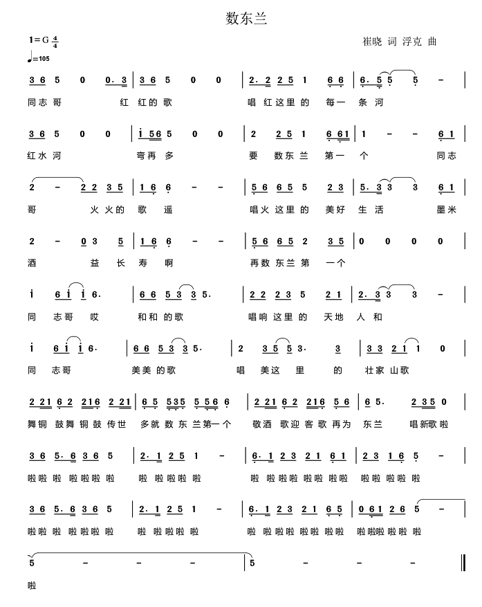 - [歌谱] 吉祥乌拉盖 李明阳 刘怡君
