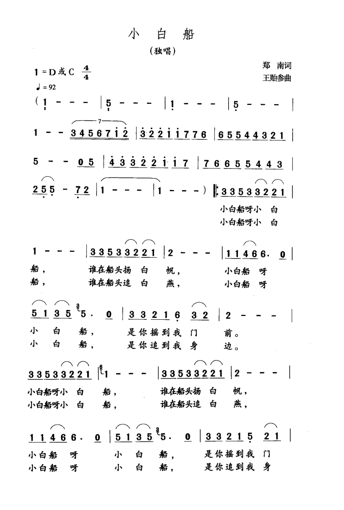 - [歌谱] 小白船
