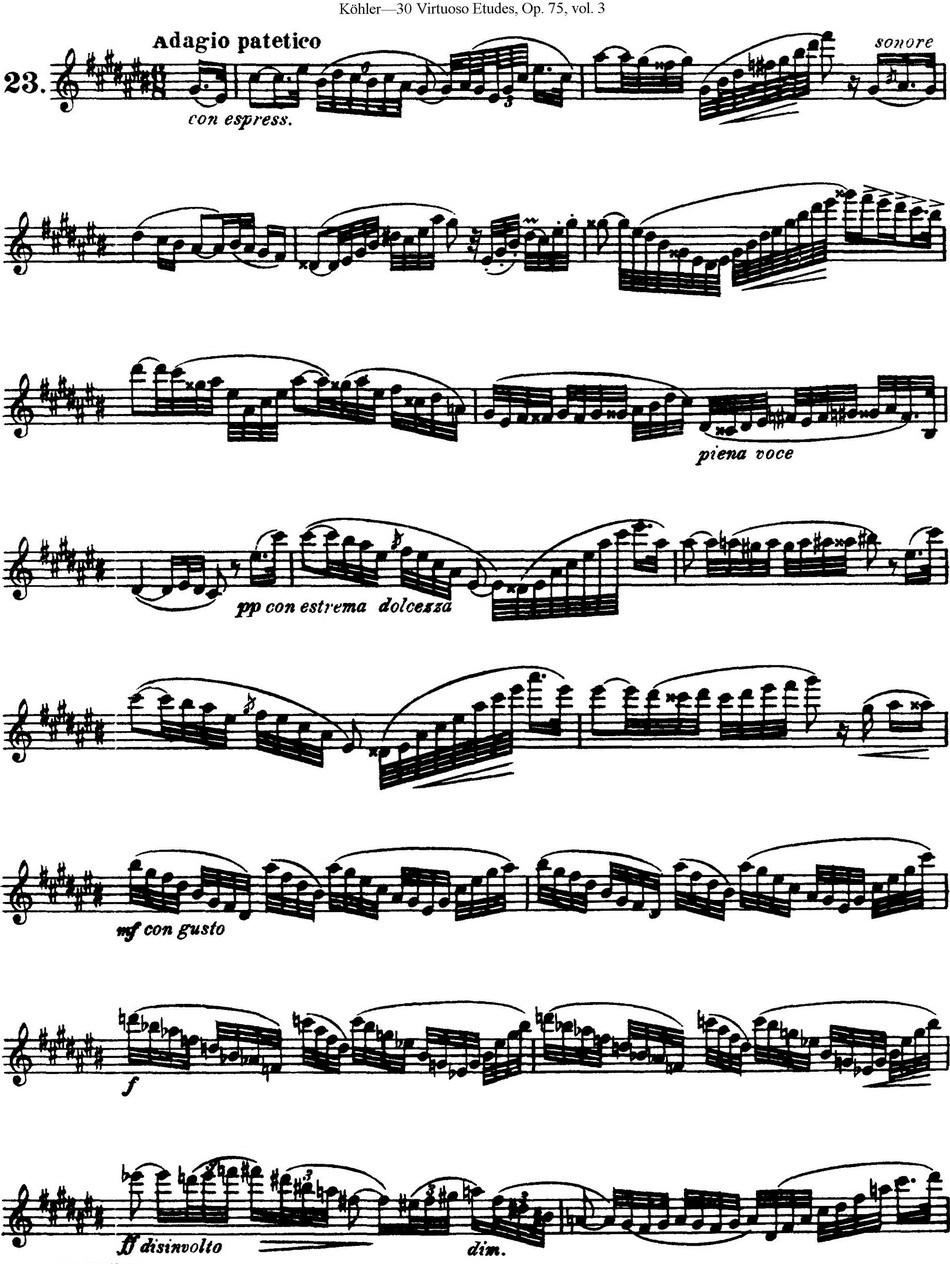 > 柯勒30首高级长笛练习曲作品75号 NO 23