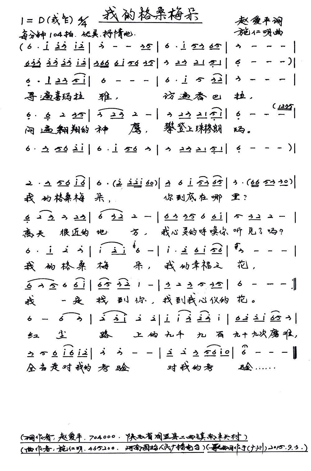 - [歌谱] 梦中的格桑梅朵