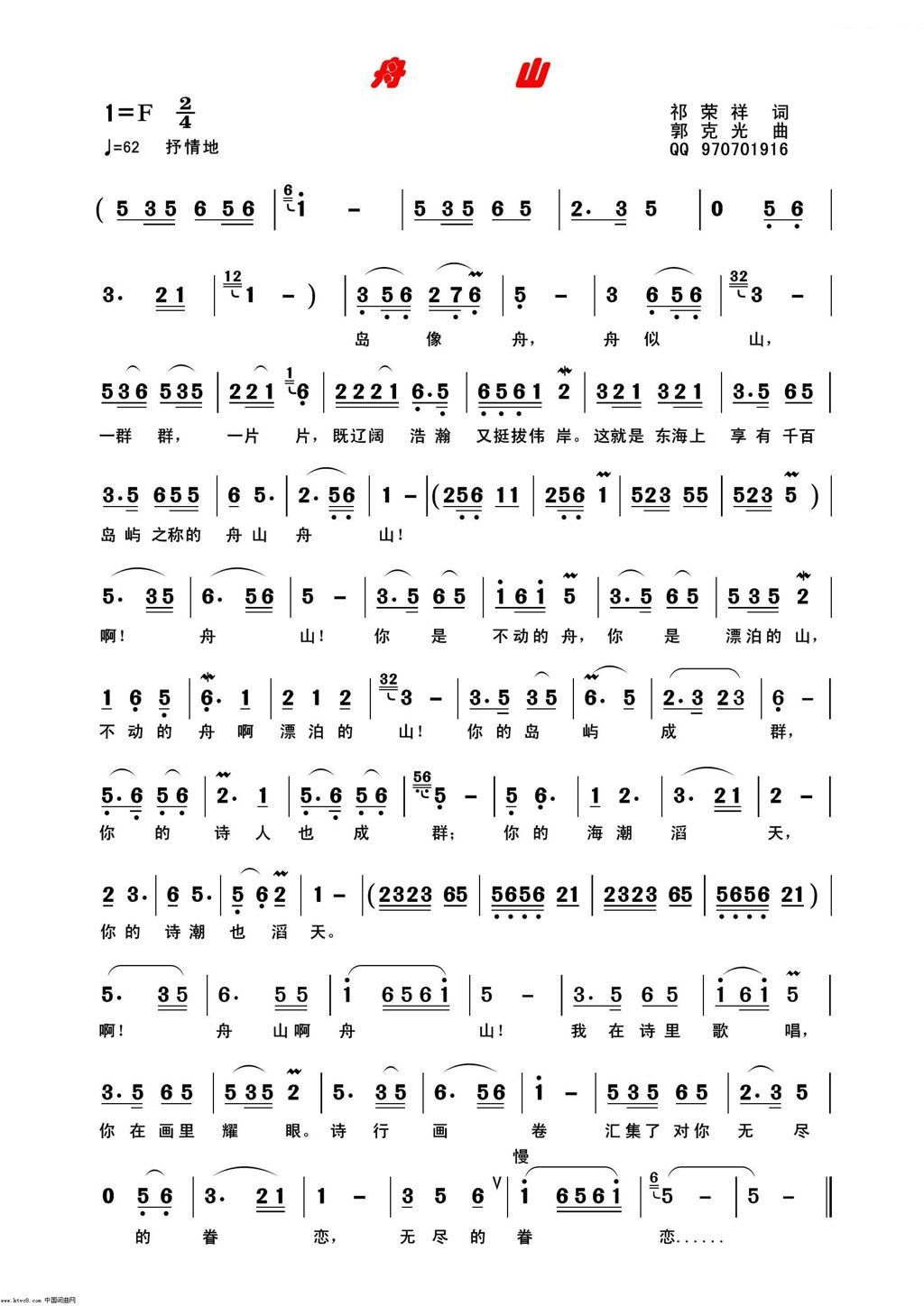 - [歌谱] 舟山之歌