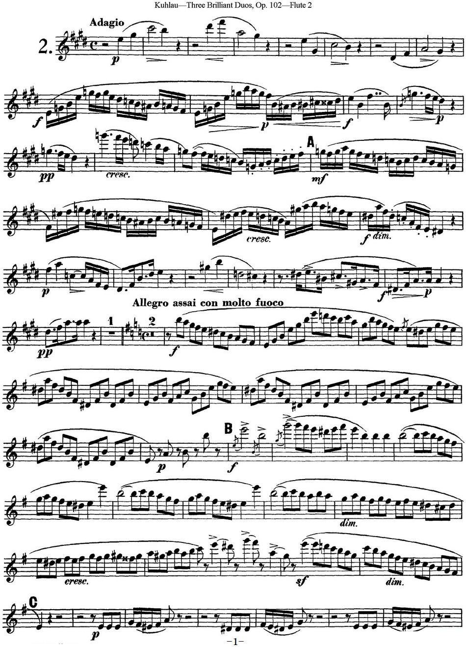 > 库劳长笛二重奏练习三段OP 102 Flute 2 NO 2