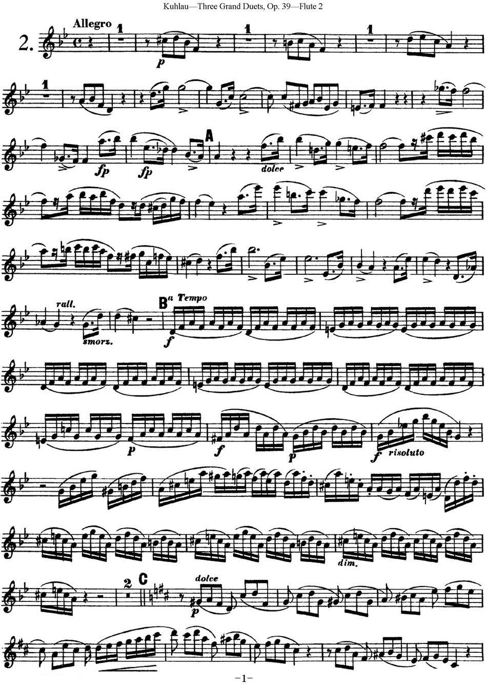 - [笛子谱,长笛谱] 库劳长笛二重奏练习三段OP 81 Flute 2 NO 1