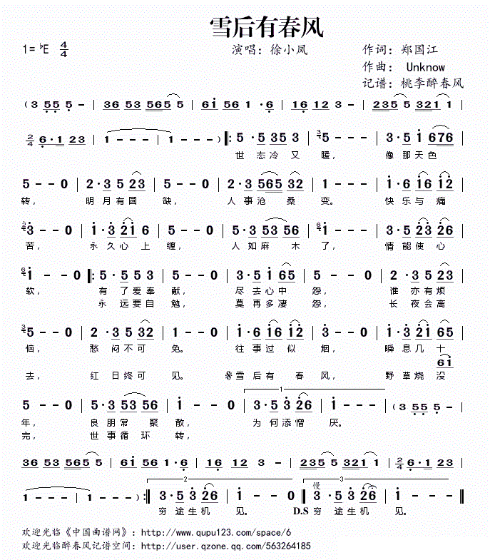 - [歌谱] 冬 徐小凤