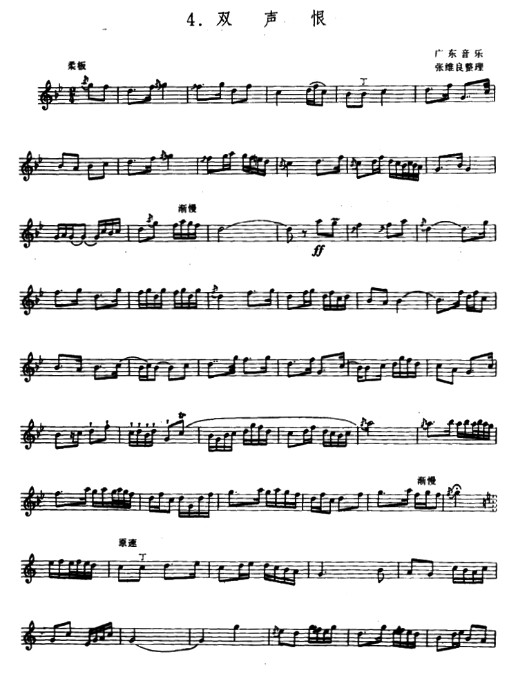 - [笛子谱,箫谱] 双声恨 笛萧谱
