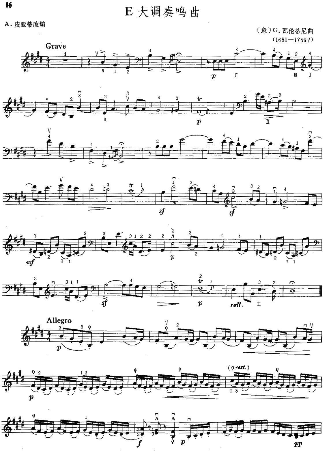 E大调奏鸣曲 弦乐类 小提琴