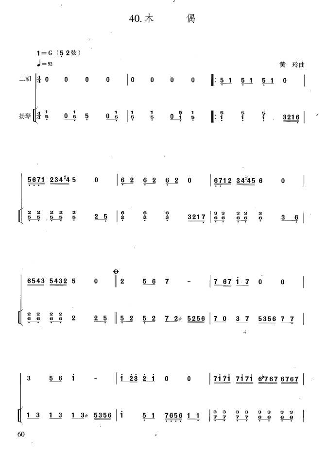 - [胡琴谱,扬琴谱] D调附点音符练习 扬琴伴奏谱