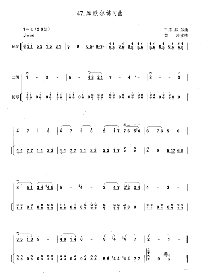 - [二胡谱,扬琴谱] 引体向上 扬琴伴奏谱