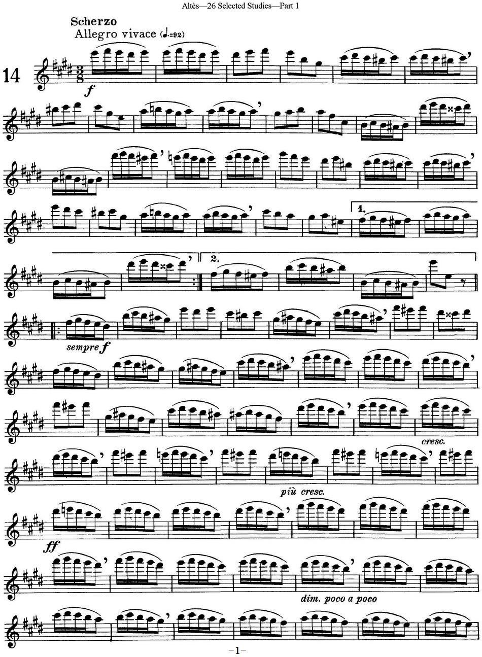 > 阿尔泰斯26首精选长笛练习曲 NO 14