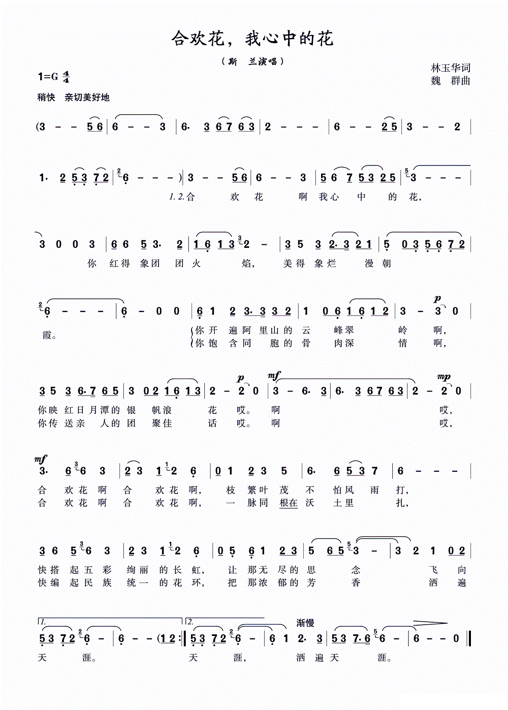 合欢花我心中的花 扫描谱