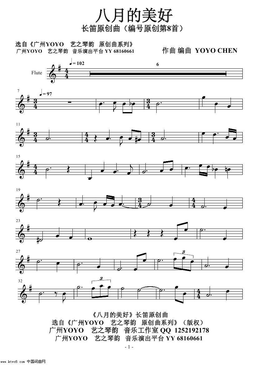 - [笛子谱,钢琴谱,长笛谱,总谱] 长笛独奏曲 伴你到天明 周开屏原创