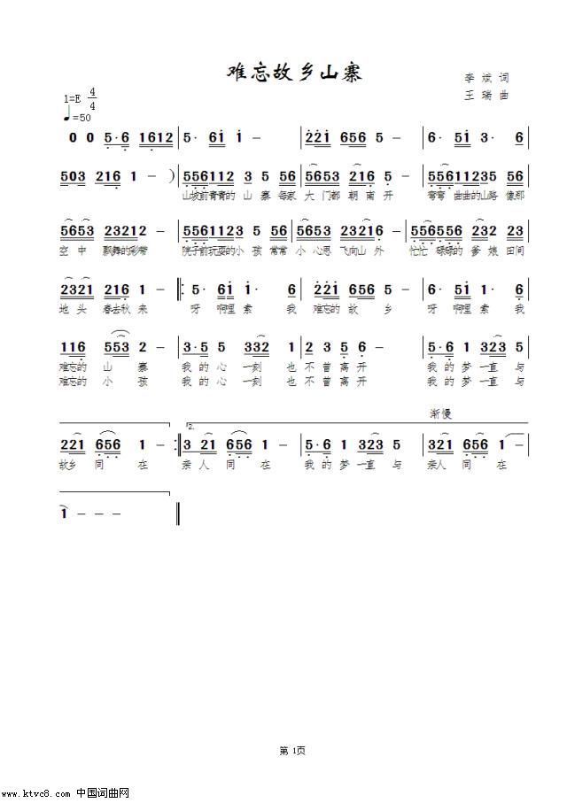 - [歌谱] 难忘故乡