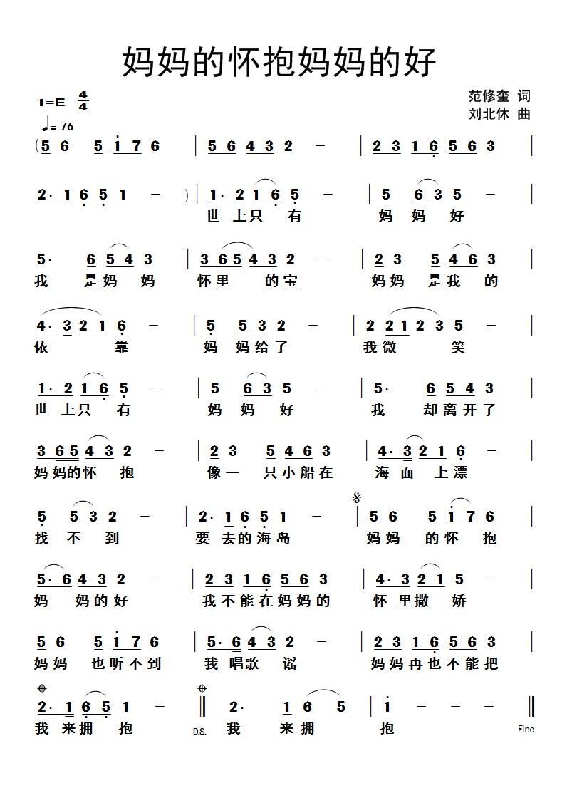 - [歌谱] 妈妈的怀抱