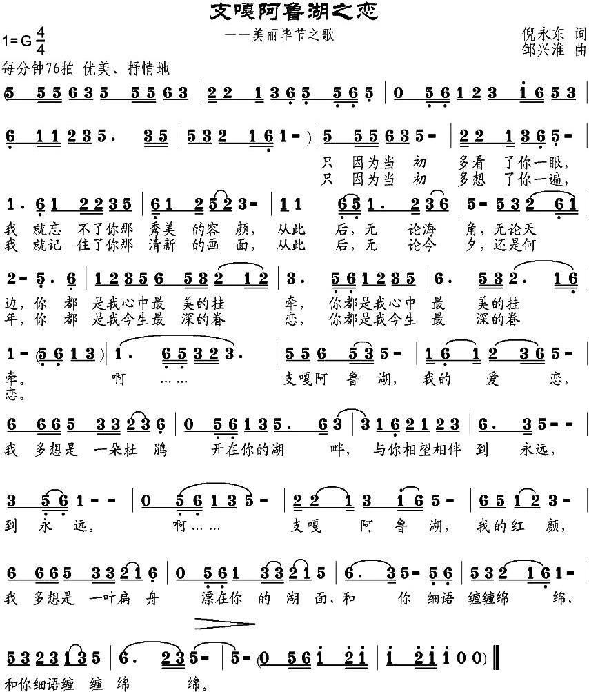 - [歌谱] 支嘎阿鲁湖