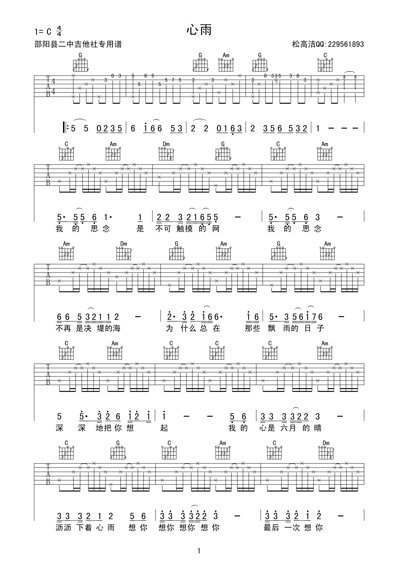 - [歌谱,吉他谱] 心雨