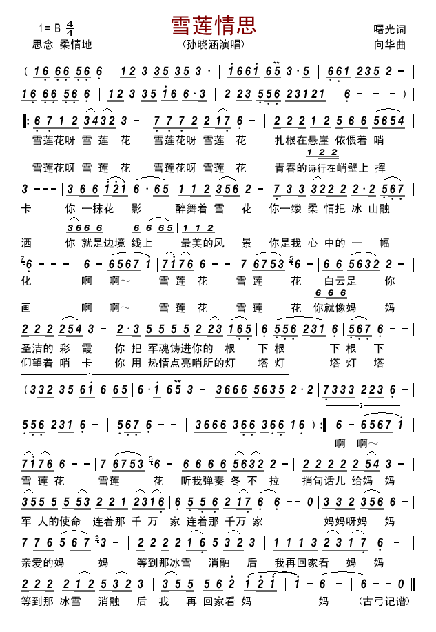 - [歌谱] 雪莲