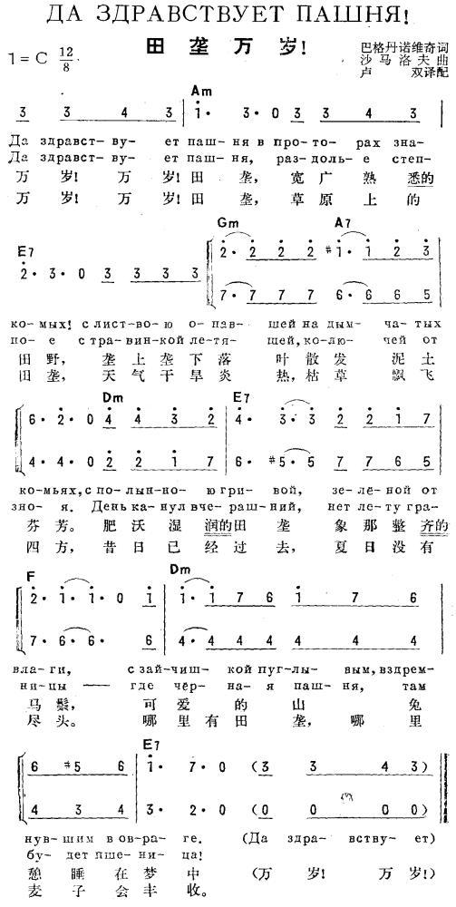 天垄万岁 俄汉双语