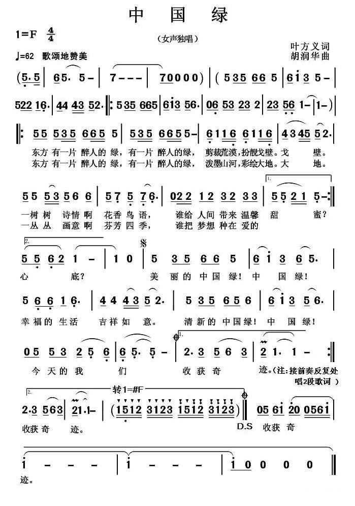 - [歌谱] 中国绿