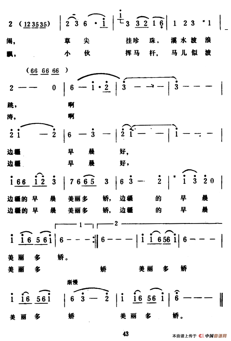 - [歌谱] 边疆早晨好