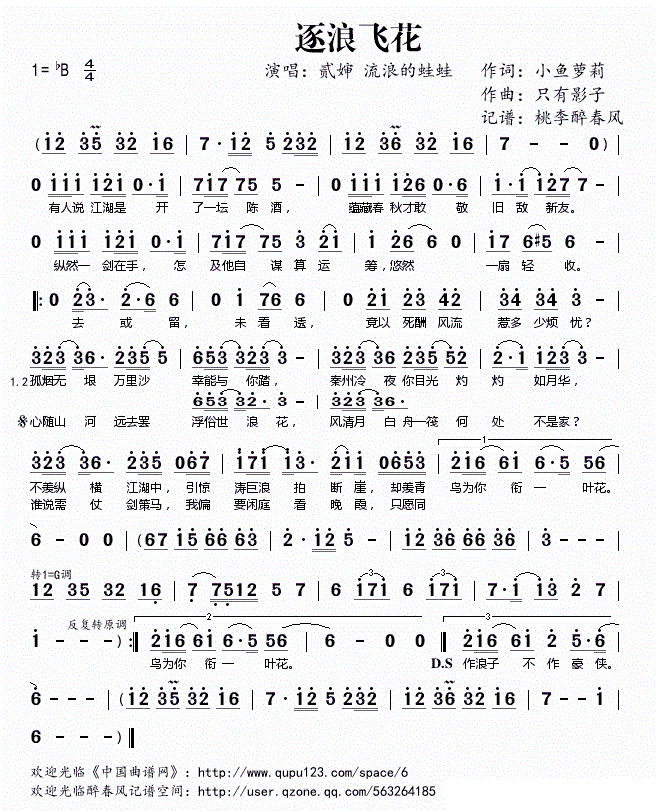 - [歌谱] 剑指风流 流浪的蛙蛙 Assen