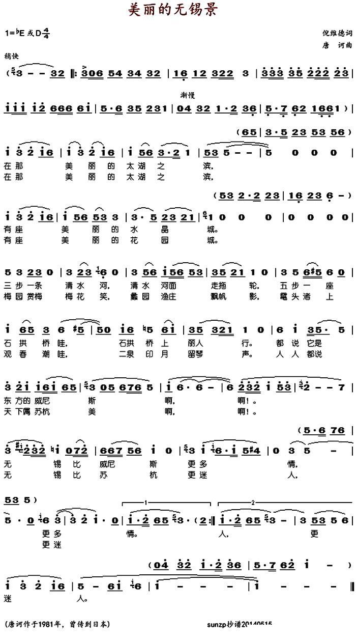 - [歌谱] 美丽的无锡景