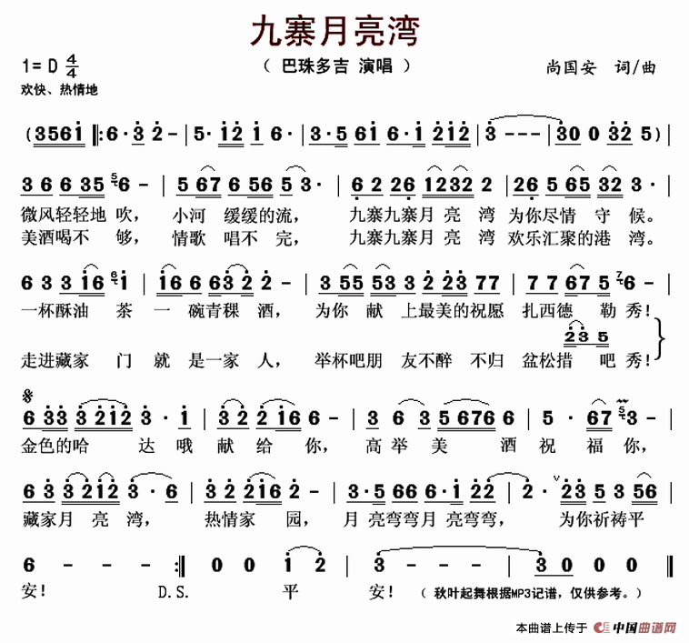 - [歌谱] 九寨月亮湾 巴珠多吉