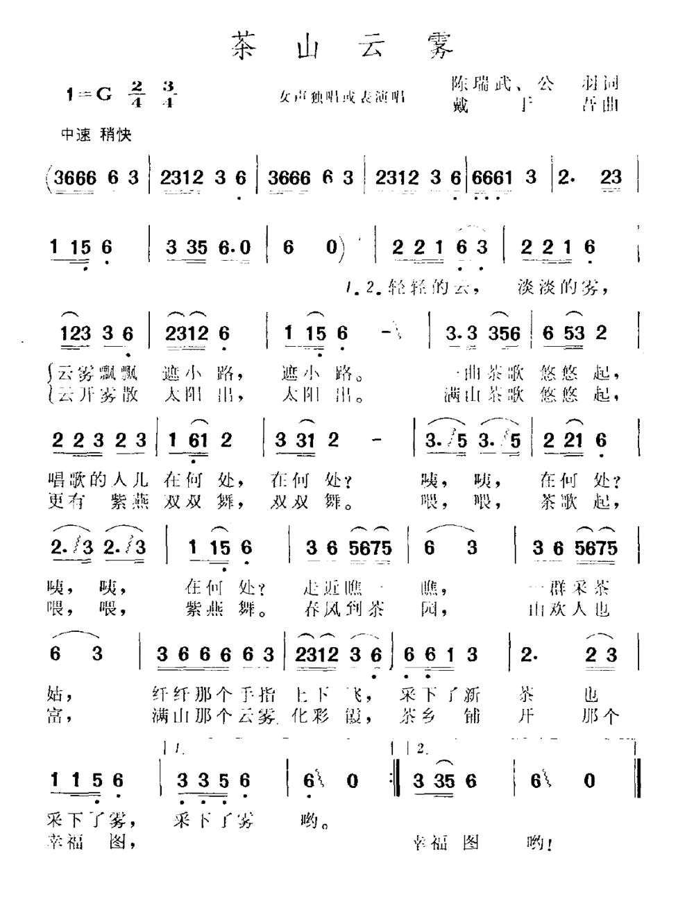 黛诺人常说景颇山上云雾深评剧 戏谱