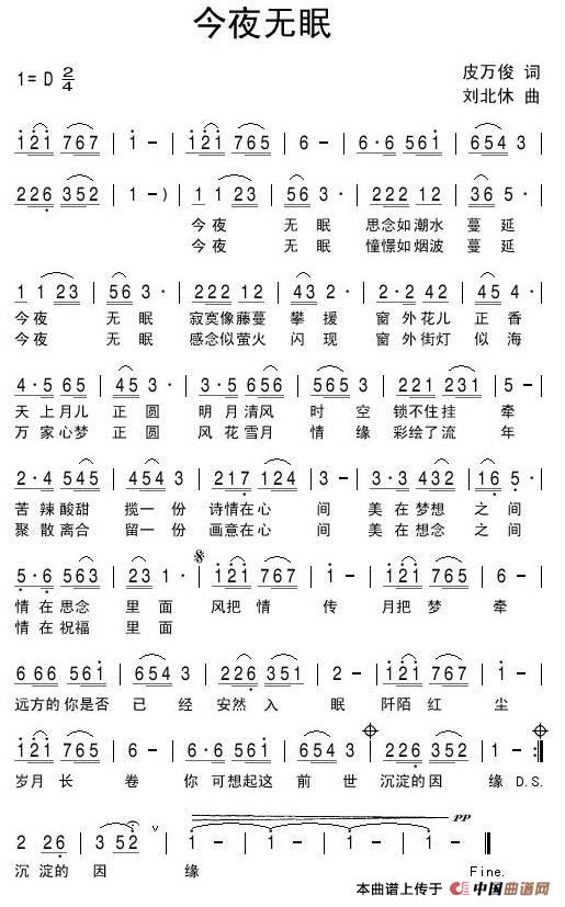 - [歌谱] 今夜无眠