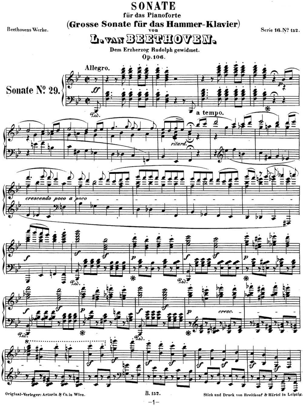 > 贝多芬钢琴奏鸣曲29 钢琴 锥子键琴 降B大调 Op 106 B flat major