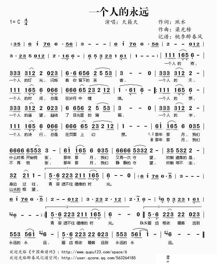 - [歌谱] 一个人的天荒地老