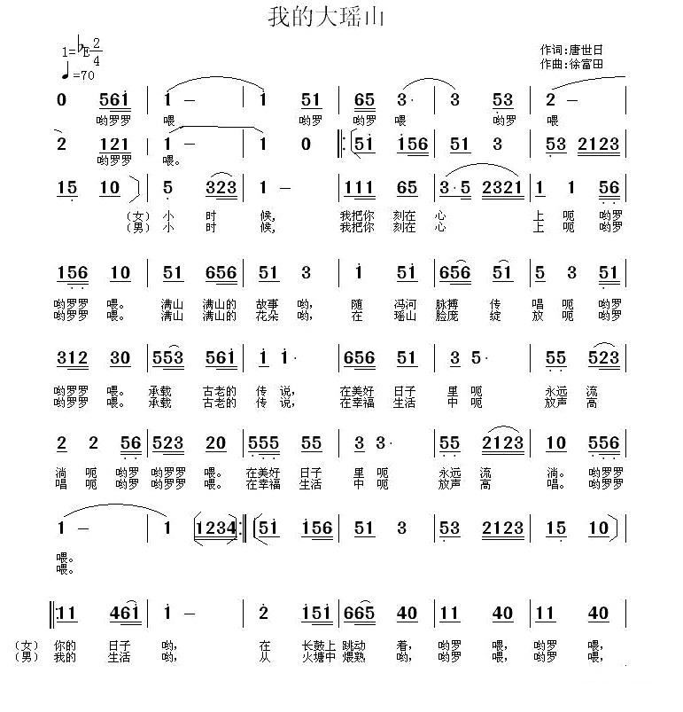 - [歌谱] 瑶山梦歌