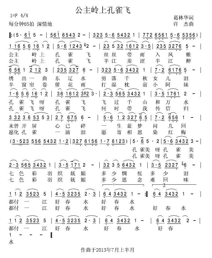 > 公主岭上孔雀飞
