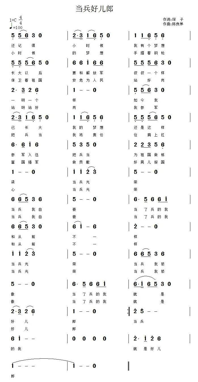 - [歌谱] 当兵好儿郎