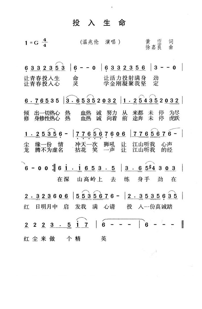 - [歌谱] 生命