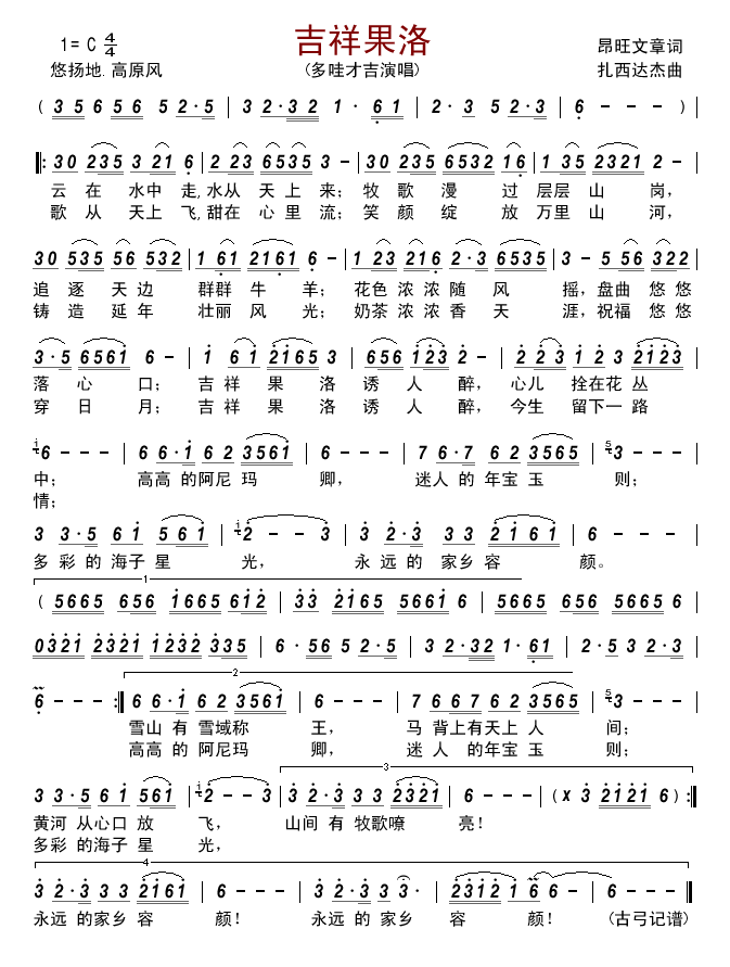 - [歌谱] 寻找你 山水玛域史诗果洛