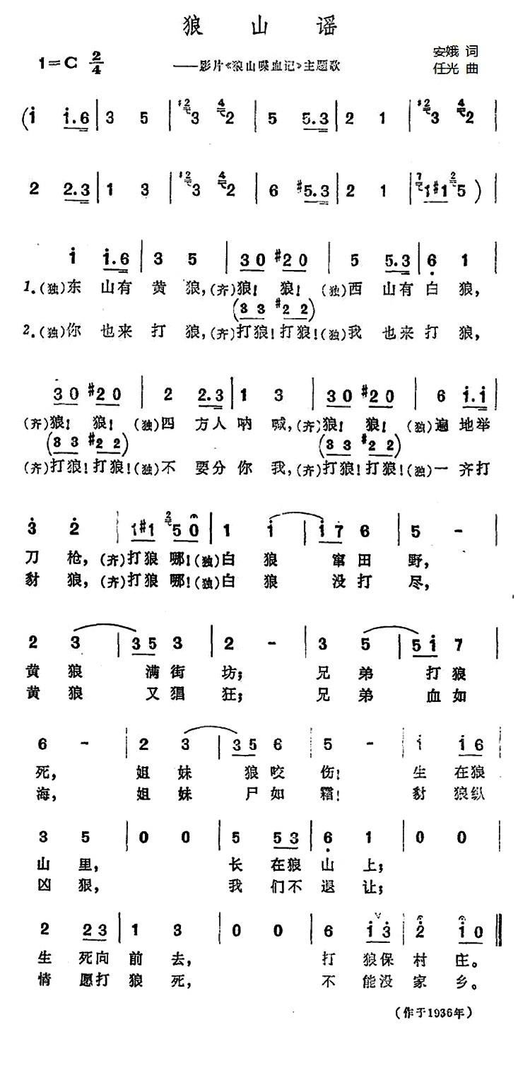 - [歌谱] 燕燕歌 电影 大路 插曲