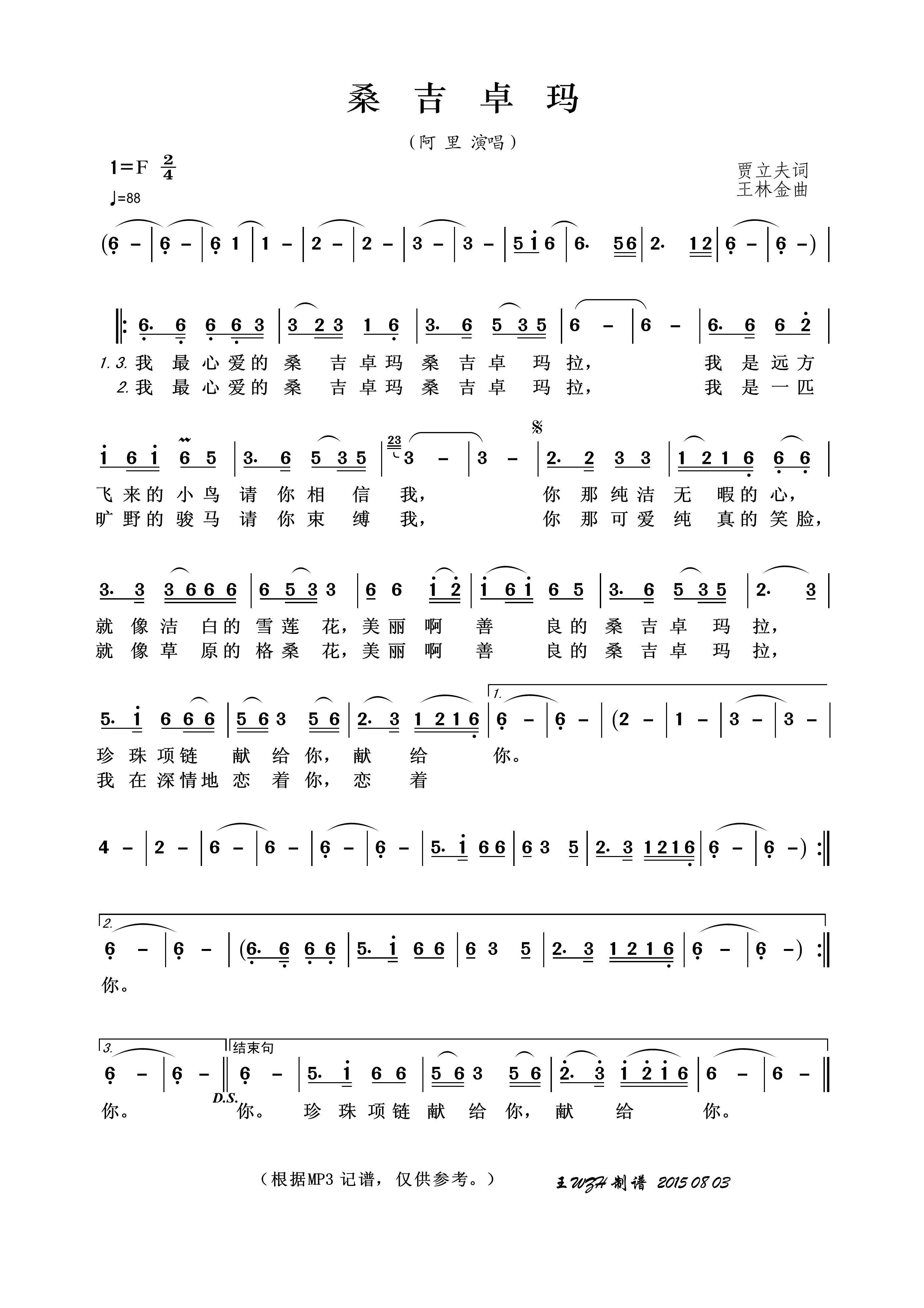 - [歌谱] 桑吉卓玛