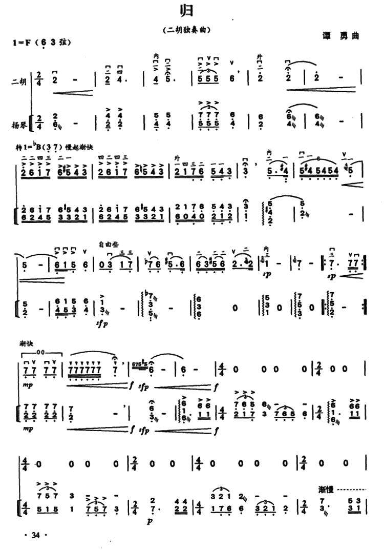 - [二胡谱,扬琴谱] 归 扬琴伴奏