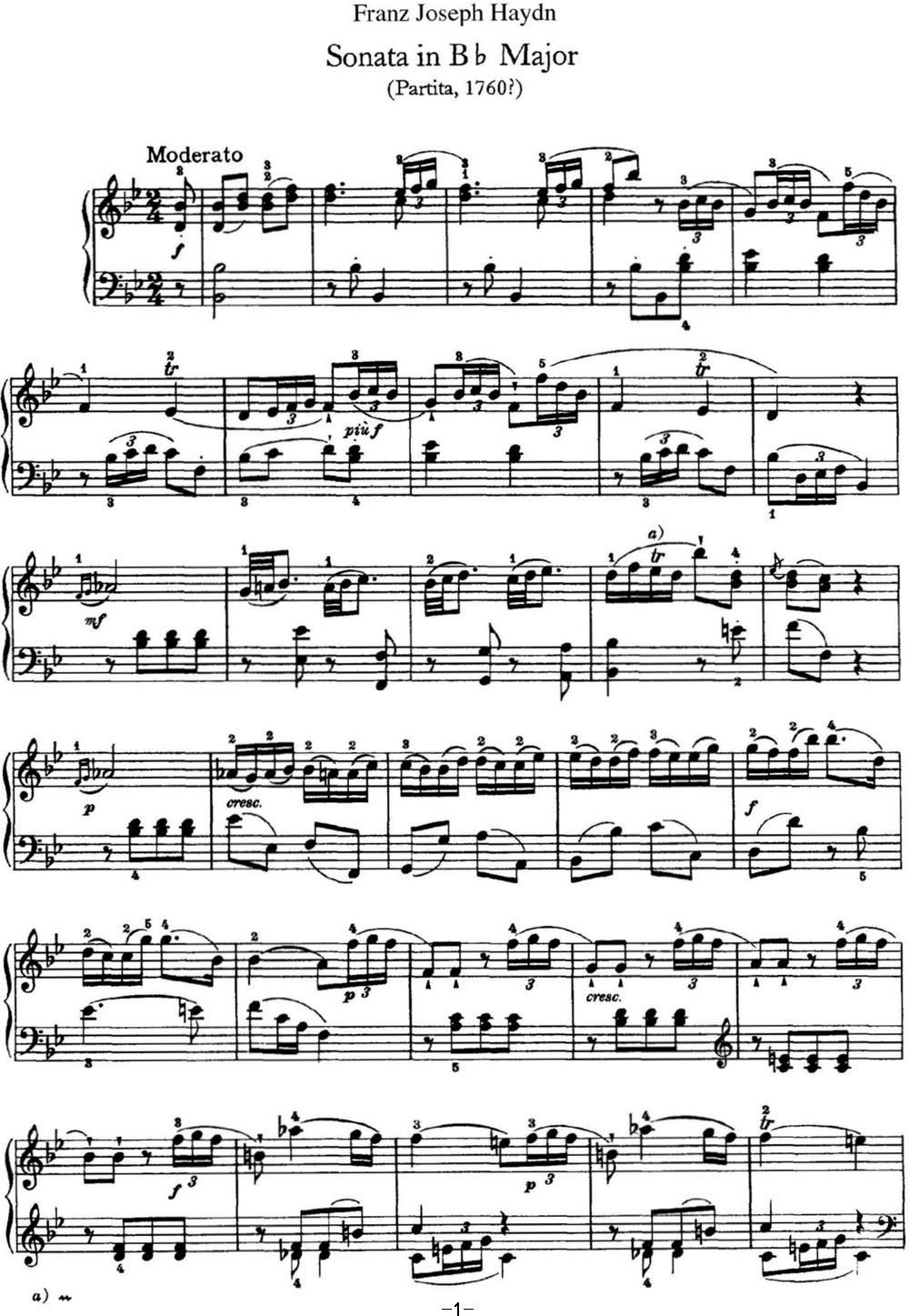 > 海顿 钢琴奏鸣曲 Hob XVI 2 Partita B flat major